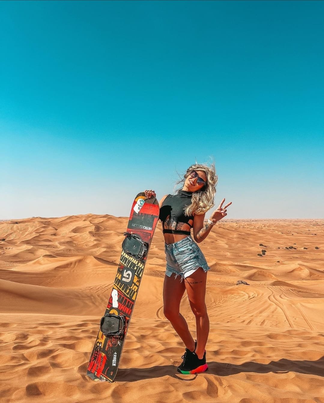 A very popular part of the desert safari. You get to ski from the highest dunes on a ski board, everyone can do it, as if you fall the soft sand is there to catch you. A thrilling experience and one that everyone should do a desert safari. We recommend you to book the red dune safari to enjoy sand-skiing the best.