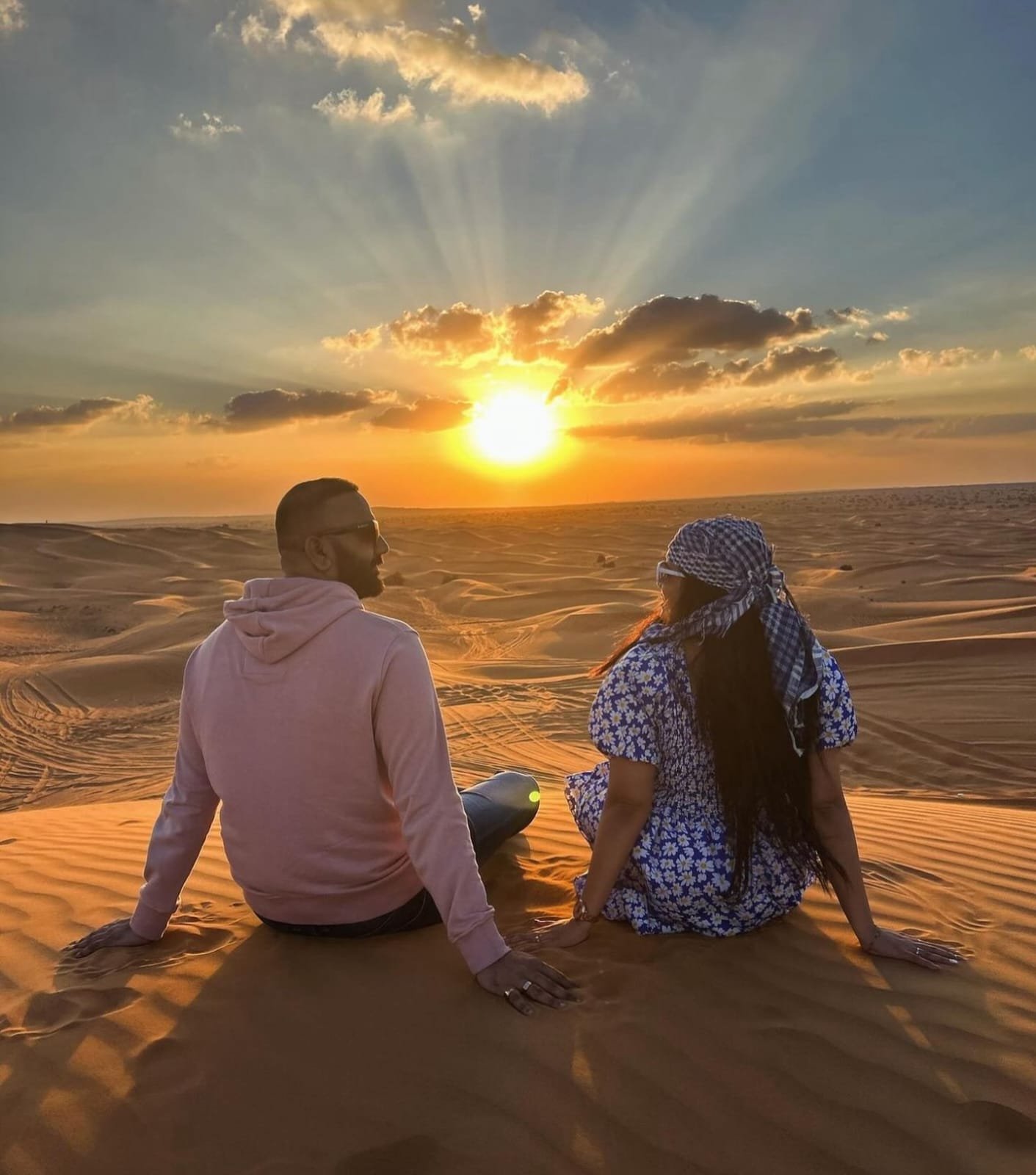 One must get a camera when going to a desert safari in Dubai as the views are breath-taking and awesome. Also one should wear comfortable clothes and avoid jewelry or expensive watch and cell phones as there is no signal at the camps. Do try the Arabic coffee at the camp and shake your belly with our belly dancer!